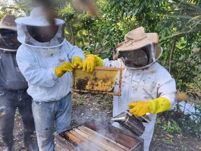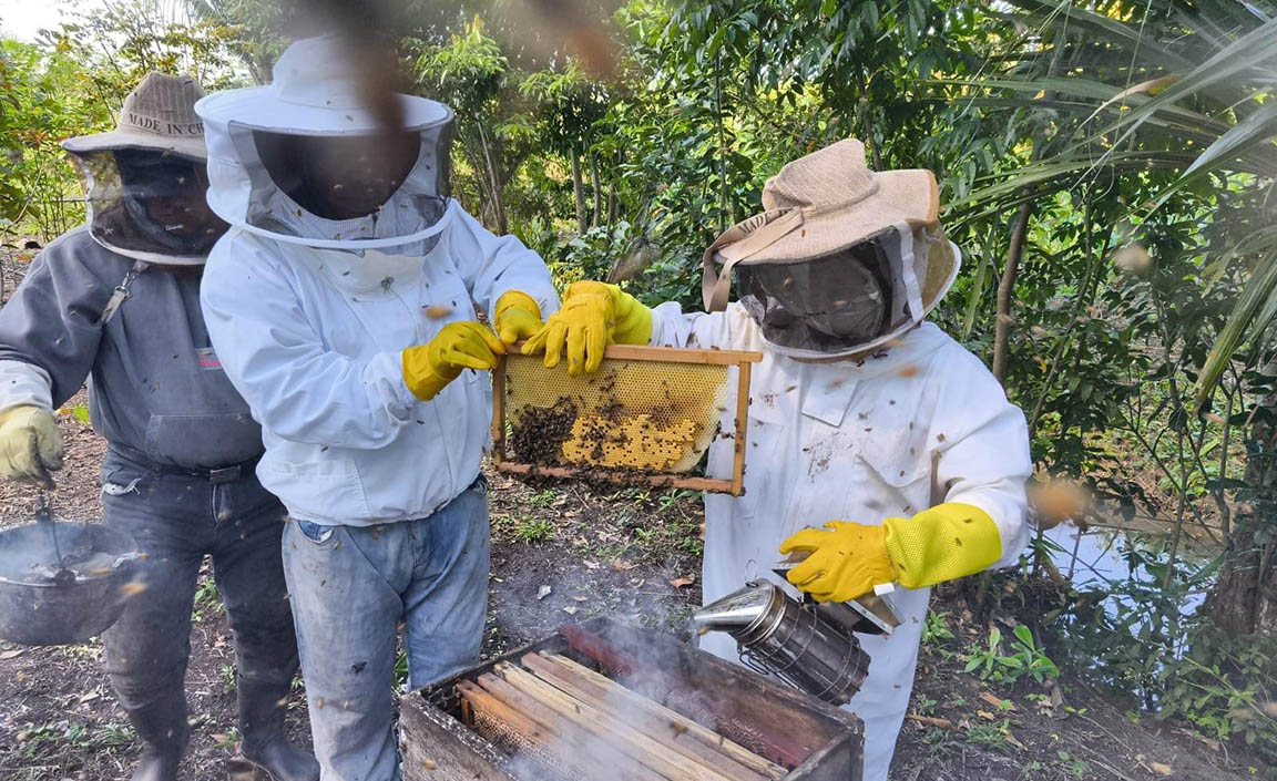 En la comunidad San Miguel El Alto, los técnicos orientaron a los porcicultores acerca de la desparasitación y nutrición animal. Mientras tanto, en Agua Chiquita, se brindó asistencia apícola que incluyó el levantamiento de alzas melarías, la toma de muestras para la detección de enfermedades y el estampado de marcos, acciones que fortalecen la producción y calidad de la miel local.