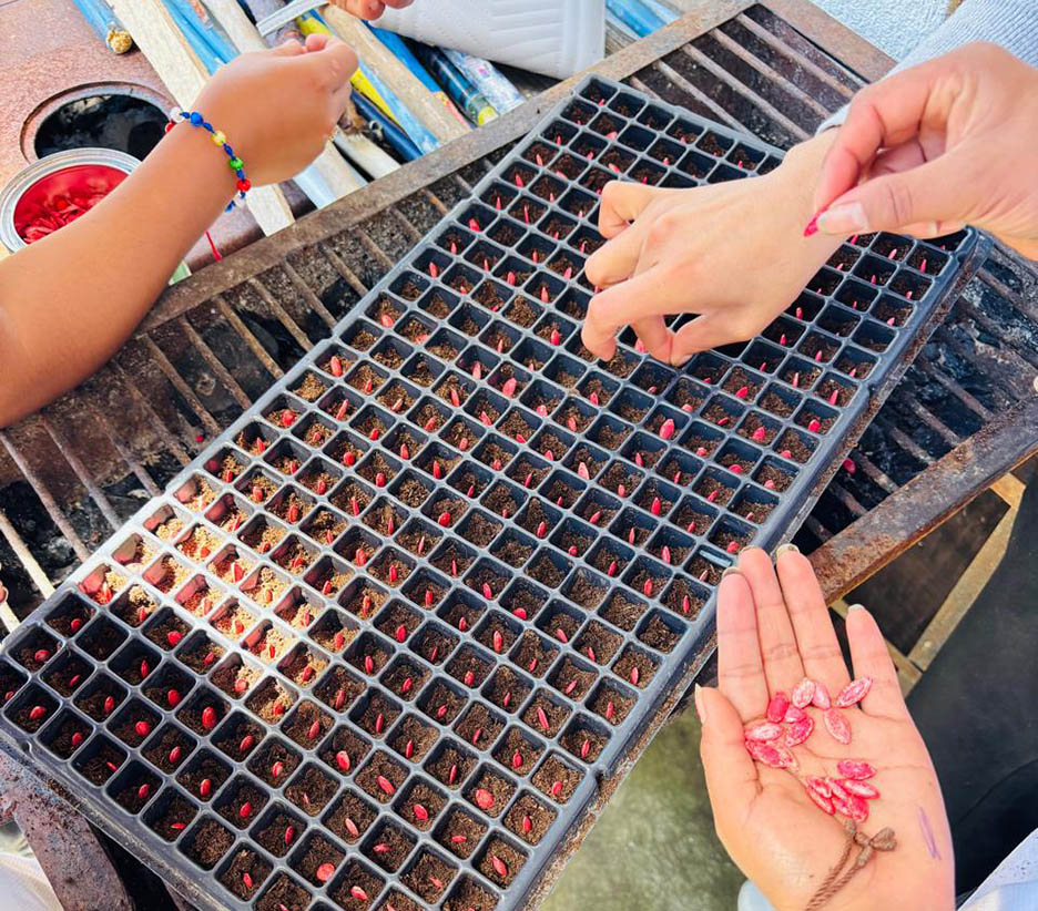 Bajo la coordinación del equipo de la Agencia Municipal de Extensión Rural (AMER) de Parramos, Chimaltenango, se brindó la instrucción teórica y práctica relativa al manejo de almácigos de hortalizas y el llenado de bandejas de pilones con semillas de cebolla, espinaca, suchini y apio.