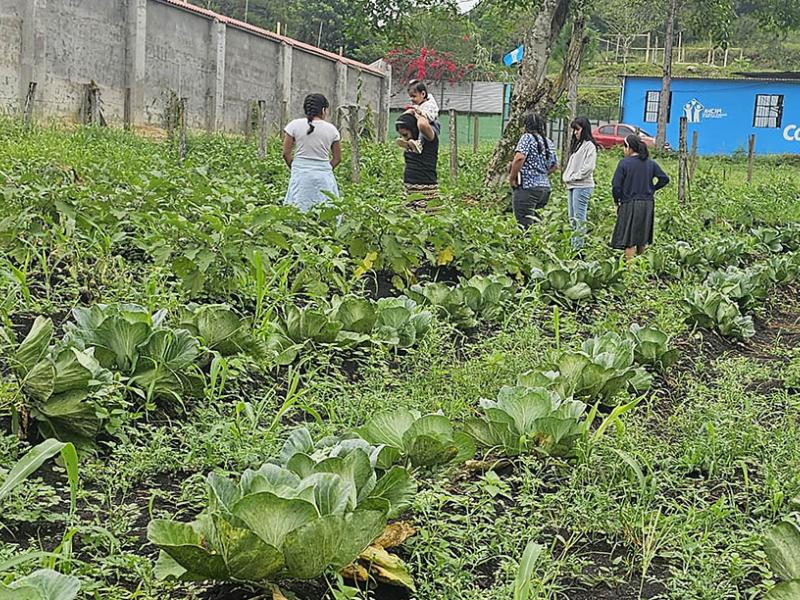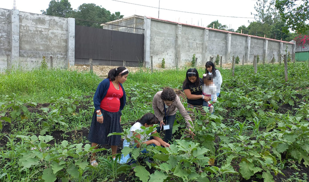 Jóvenes de Machaquilá recogen cosecha de huerto comunitario