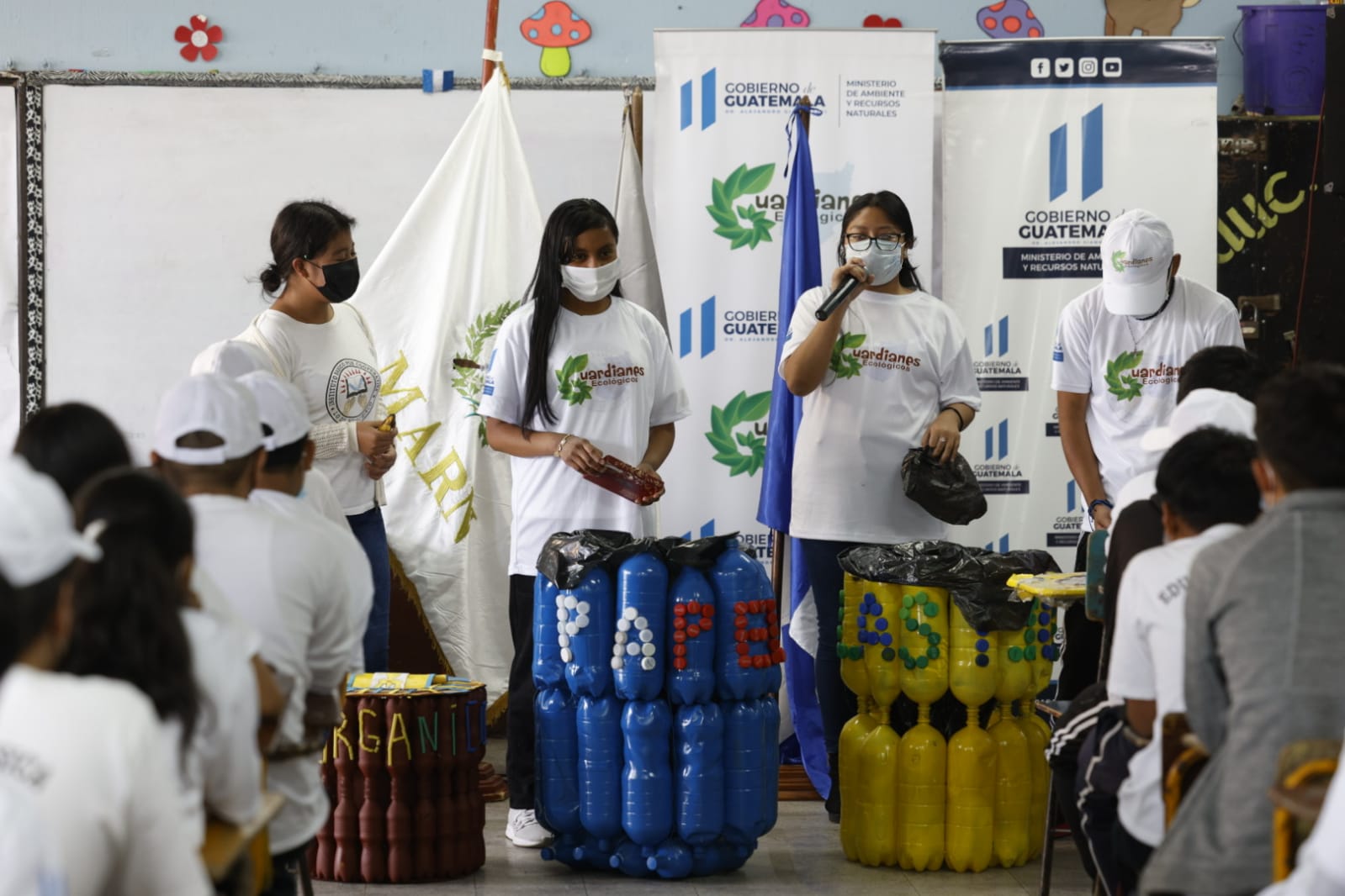 Los nuevos Guardianes Ecológicos de Mixco presentaron sus proyectos con materiales reciclables como parte de la finalización del diplomado. Entre las acciones desarrolladas está la reforestación en el establecimiento educativo y la recolección de latas y plásticos, como parte de lo establecido en el Reglamento 164-2021 para la gestión integral de los residuos y desechos sólidos comunes.