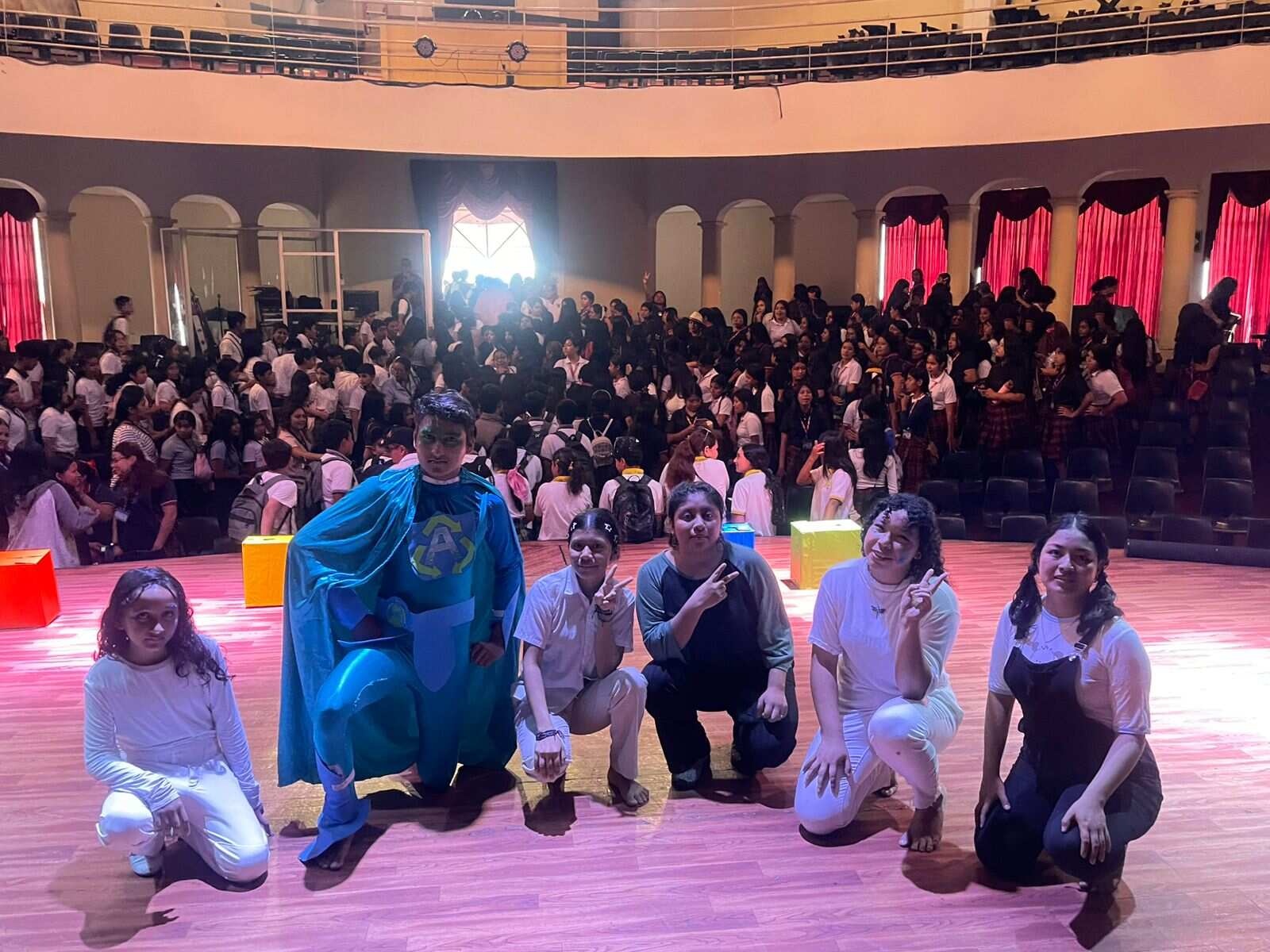 350 estudiantes de distintos centros educativos, entre ellos, alumnos de la Escuela Normal Intercultural, el Instituto Carlos Samayoa Chinchilla, el Colegio LIS de Escuintla y la Escuela Urbana Mixta del municipio de Guanagazapa, asistieron a esta puesta en escena que los invitó a reflexionar sobre la contaminación.