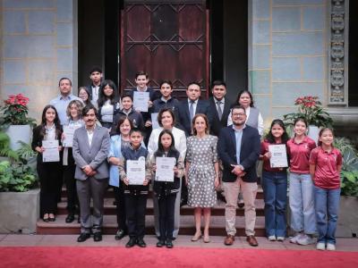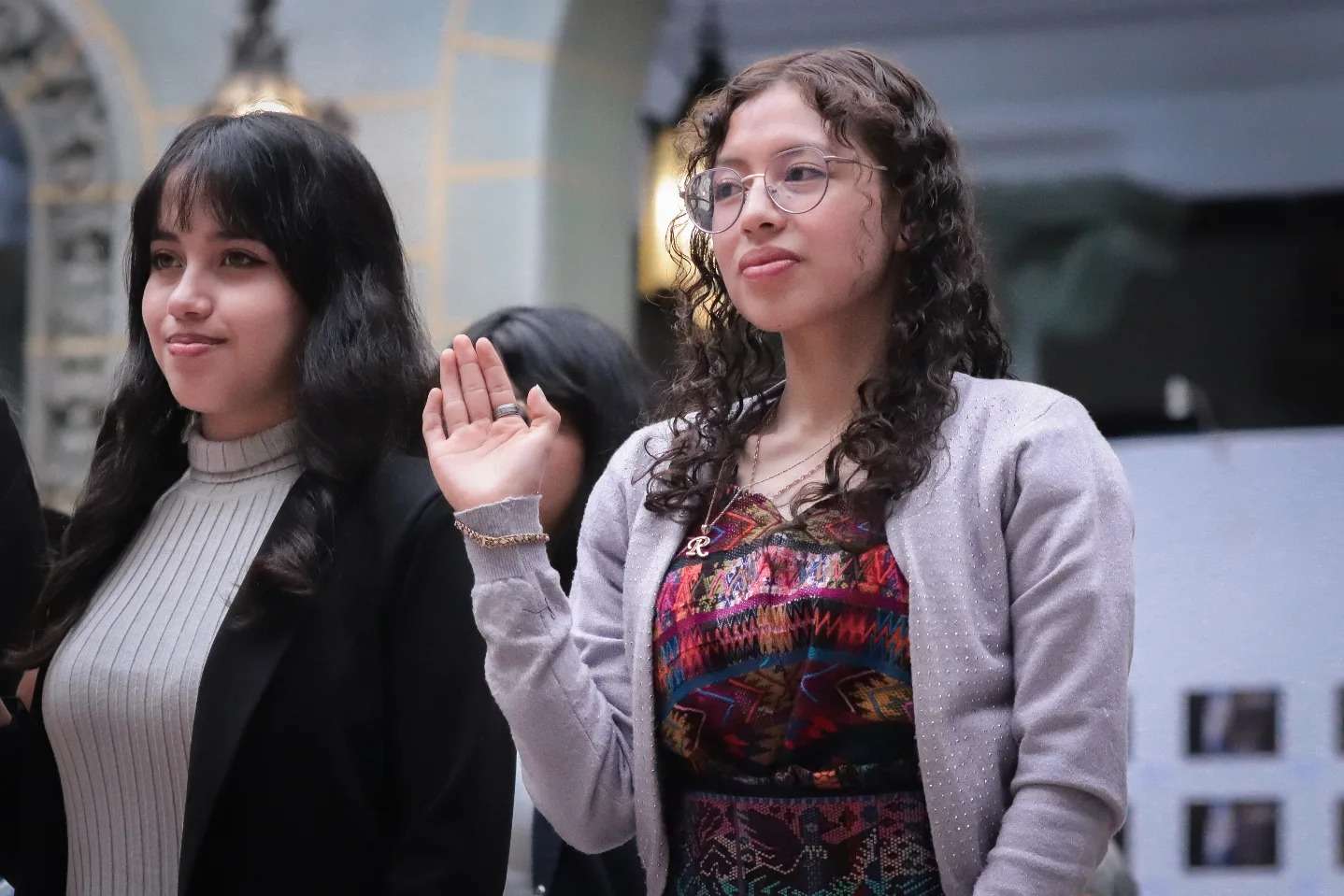 La vicepresidenta de la República, Karin Herrera, y la secretaria Nacional de Ciencia y Tecnología, Gabriela Montenegro, juramentaron a dos delegaciones conformadas por niñas, niños y jóvenes que representarán a Guatemala en olimpiadas internacionales en Türkiye y Costa Rica.