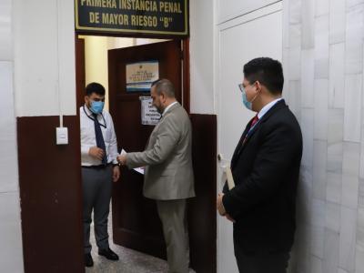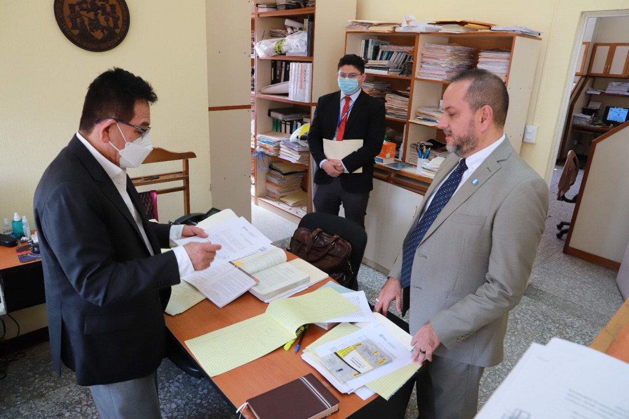 Como parte de las acciones inmediatas del Estado de Guatemala en atención a las medidas cautelares otorgadas al Juez Miguel Ángel Gálvez Aguilar desde el 2016, el Sub director Ejecutivo encargado del Despacho de la Comisión Presidencial por la Paz y los Derechos Humanos (Copadeh), Magister Eddy Cano Cassiano, se presentó al Juzgado de Mayor Riesgo B para hacer entrega al Juez, de una nueva convocatoria a una reunión interinstitucional para revisar y conocer las necesidades y solicitudes del juez en el marco de dichas medidas.