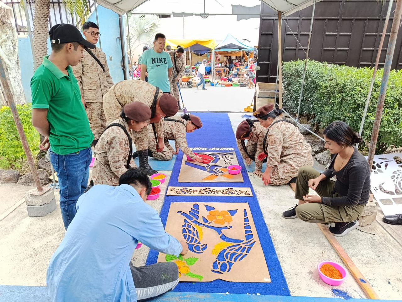 Durante la jornada, los participantes no solo aprendieron sobre el significado y la técnica de las alfombras tradicionales, sino que también vivieron el proceso de creación desde sus bases: tiñeron y prepararon el aserrín, aplicaron color y dieron vida a cada diseño. Esta experiencia práctica y creativa resultó profundamente significativa, ya que promovió el trabajo en equipo, el interés por las expresiones artísticas tradicionales y el desarrollo de la creatividad.