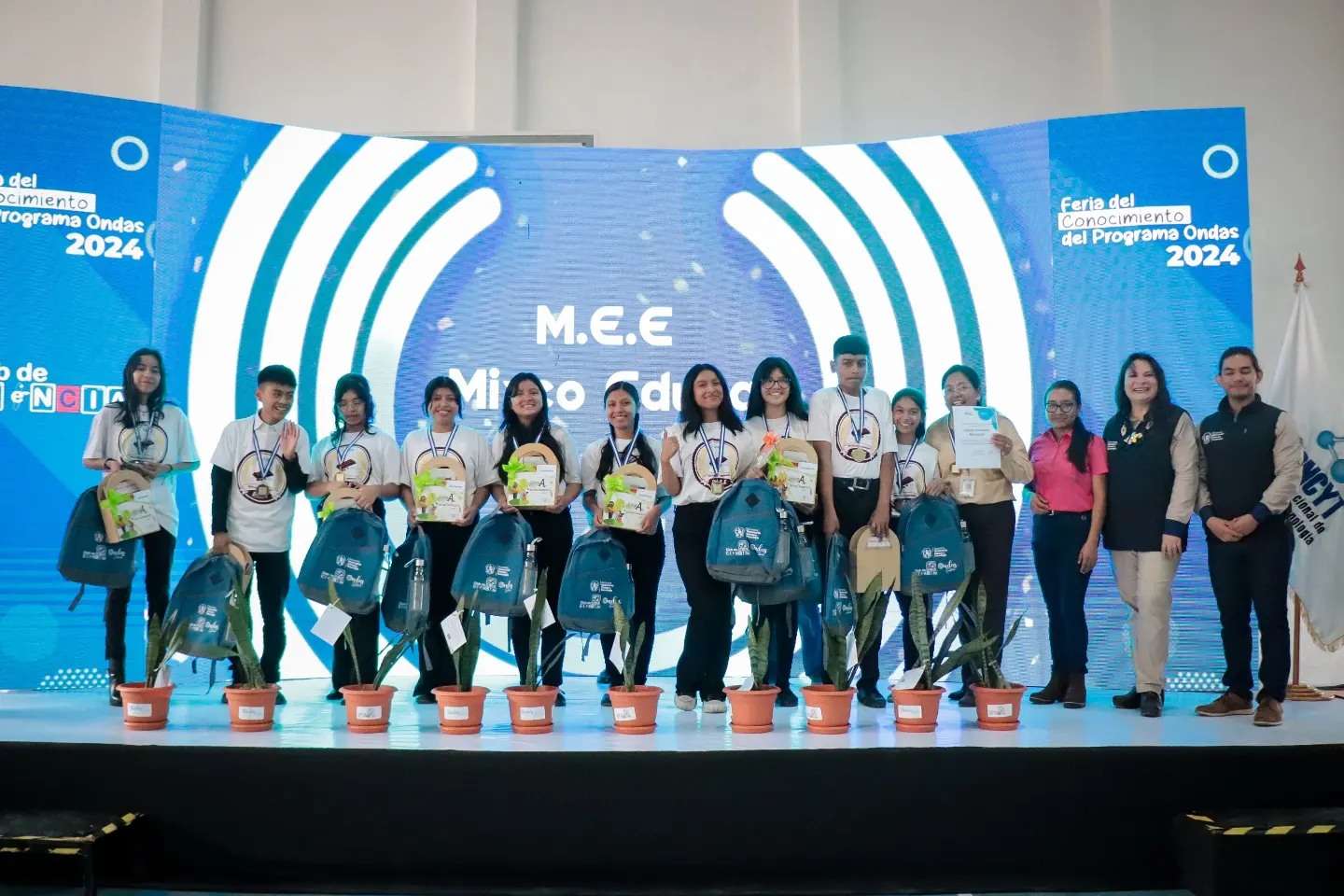 La creatividad y el talento de la juventud que participó en la Feria del Conocimiento del Programa Ondas 2024 fueron reconocidos por la vicepresidenta de la República, Karin Herrera, y la secretaria Nacional de Ciencia y Tecnología, Gabriela Montenegro. Ambas premiaron a los jóvenes que presentaron proyectos basados en el método científico.