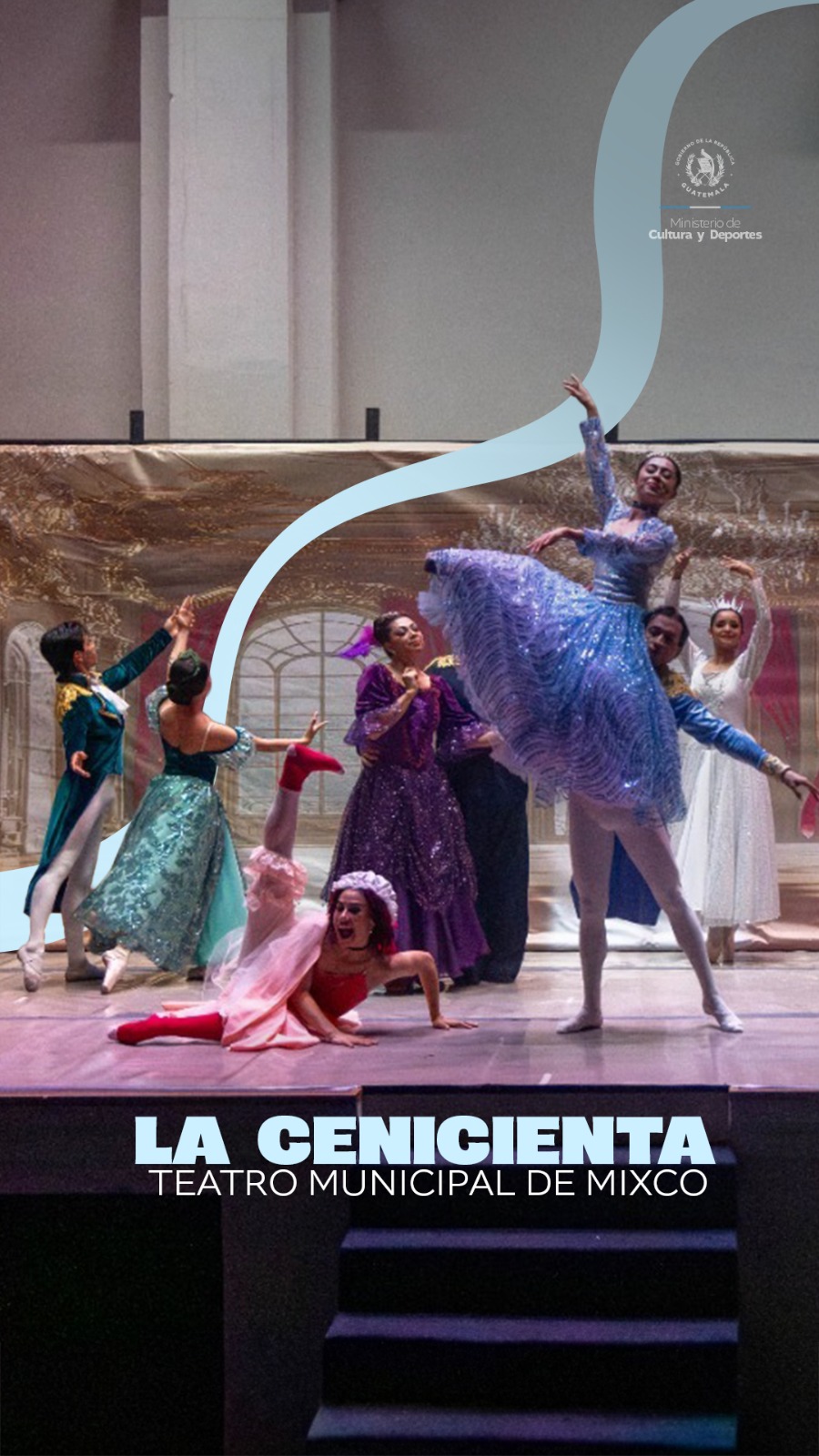 Las aventuras de la Cenicienta representadas con el encanto que solo el Ballet Nacional «Christa Mertins» puede brindar, llego a las instalaciones del Teatro Municipal de Mixco.