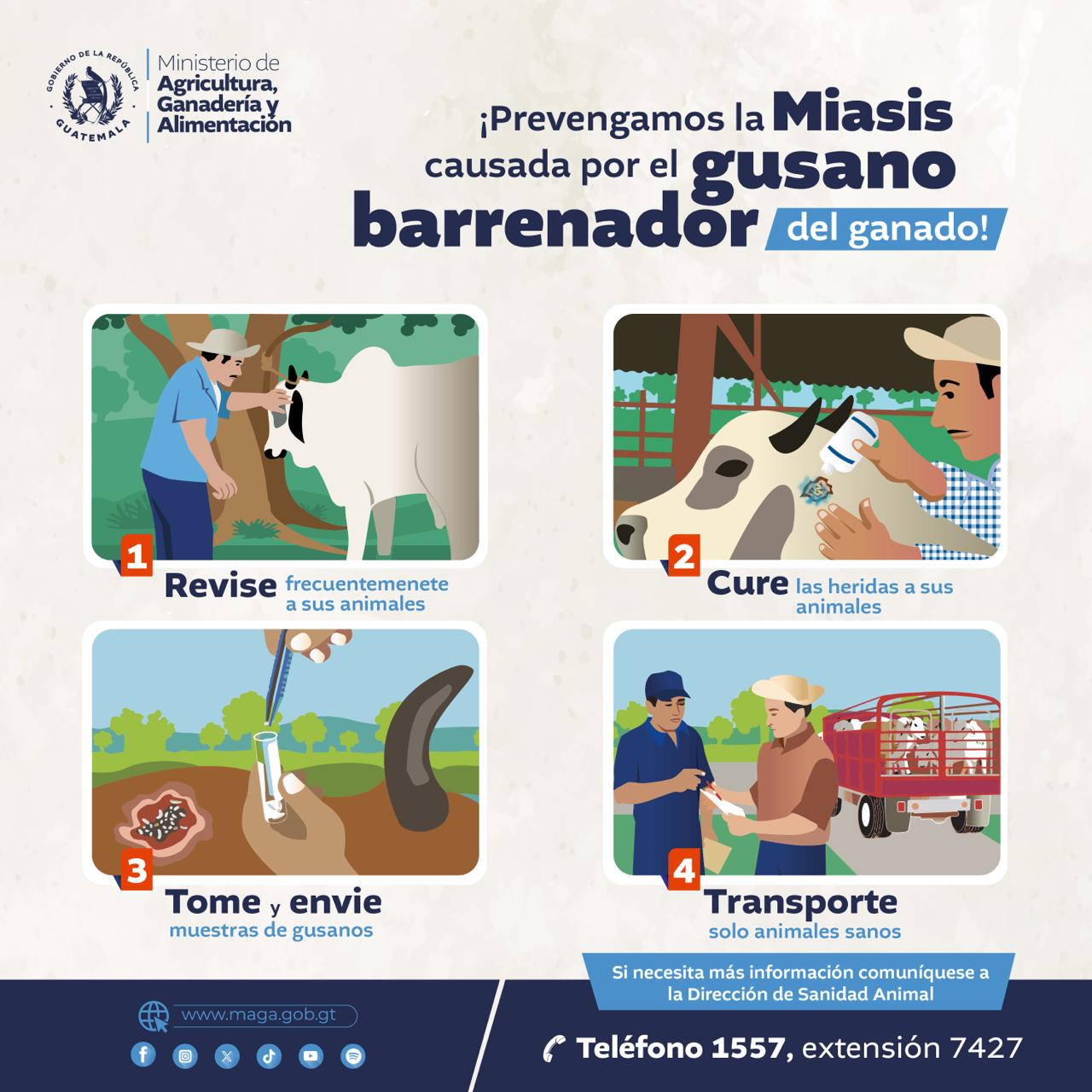 Recuerde que si desea más información puede comunicarse a la línea 1557 extensión 7427 de la Dirección de Sanidad Animal del MAGA.