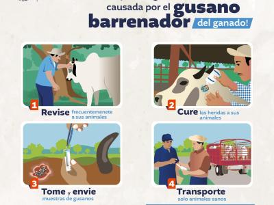 El gusano barrenador del ganado, también llamada gusanera o miasis, es una enfermedad causada por las larvas de la mosca (Cochliomyia hominivorax), las cuales se alimentan de tejidos vivos y fluidos generados en las heridas.