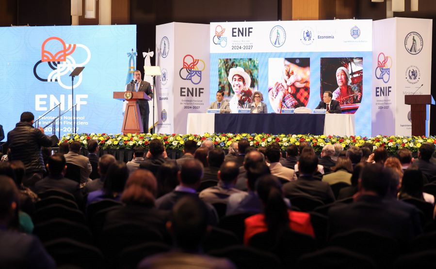 Con la inauguración del Excelentísimo Señor Presidente Constitucional de la República de Guatemala, funcionarios de Gobierno, representantes de organismos internacionales, cuerpo diplomático, centros de investigación, sector académico e importantes sectores productivos de la sociedad guatemalteca entre otros, esta mañana se realizó el lanzamiento de la Estrategia Nacional de Inclusión Financiera para Guatemala (ENIF) 2024-2027, reafirmando de esta manera su interés de participación e involucramiento en dicha estrategia.