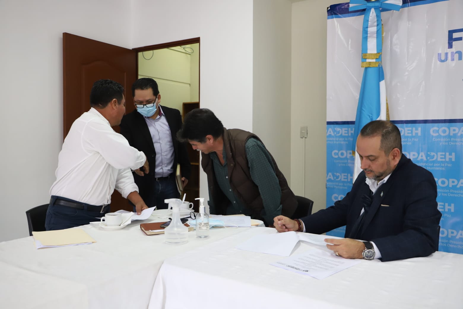 La COPADEH a través del Sub Director Magister Eddy Cano y el Lic Fredmann Pacay Director de Atención a la Conflictividad sostuvieron reunión con representantes de los Veteranos Militares, quiénes hicieron entrega de un pliego de peticiones relacionadas con la Ley de Temporal de Desarrollo Integral recientemente aprobada por el Congreso de la República.