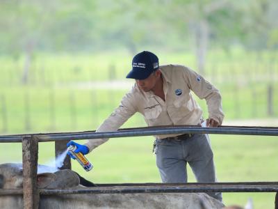 “La idea es tratar de curar las heridas frescas, crear un sello en ellas para que exista un secado y así la mosca del Gusano Barrenador del Ganado no pueda ovipositar en la herida del animal”.
