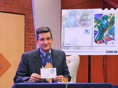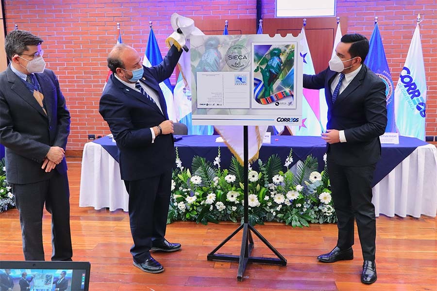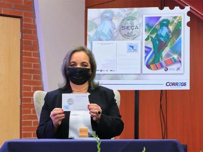 La Dirección General de Correos y Telégrafos lanza postal conmemorativa del 60 aniversario de la Secretaría de Integración Económica Centroamericana (SIECA).