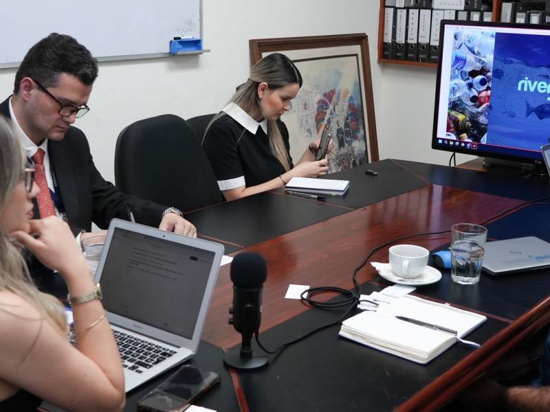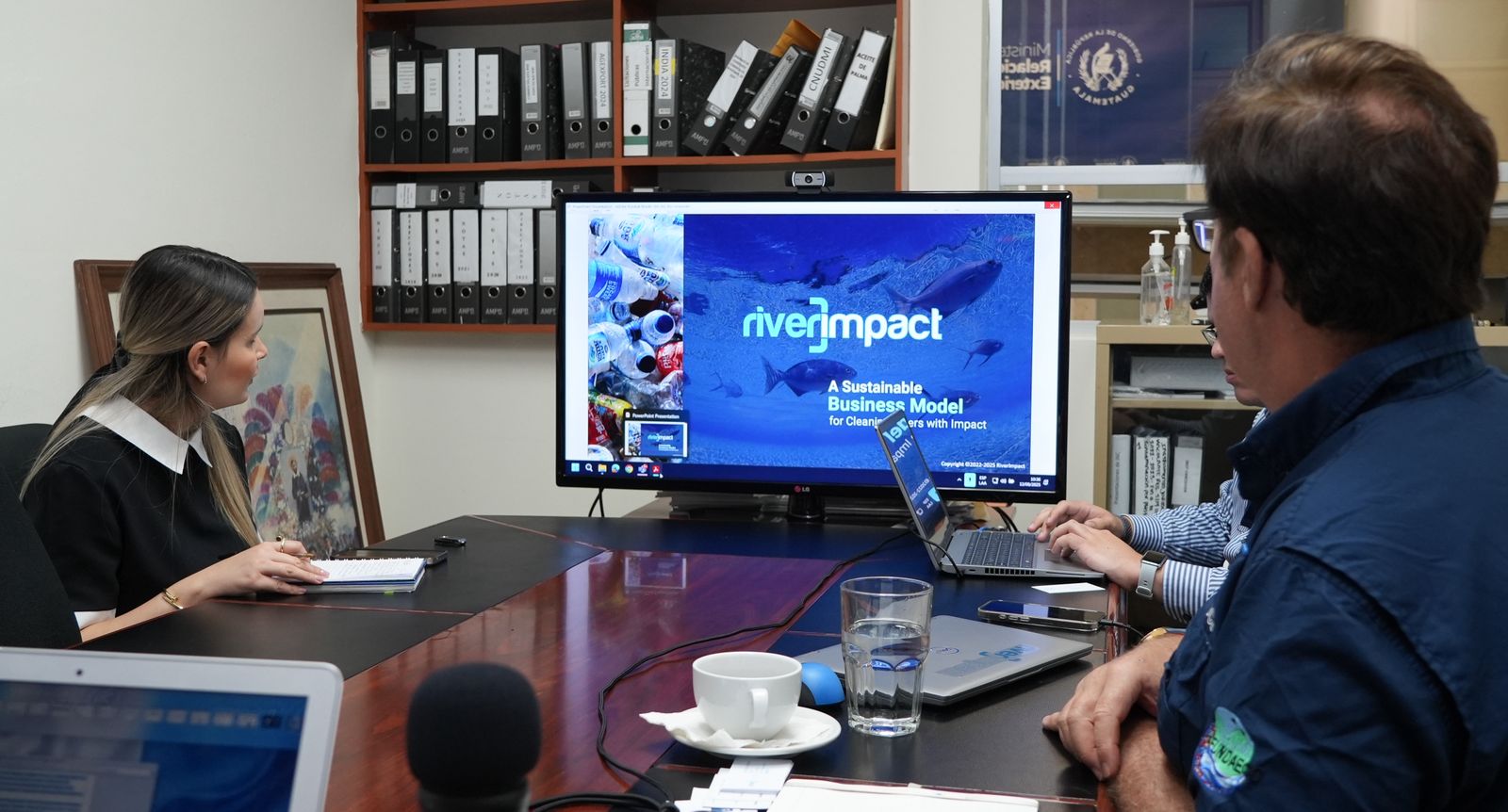 Guatemala, 14 de agosto de 2025. Funcionarios del Ministerio de Relaciones Exteriores (MINEX) se reunieron con representantes de la empresa River Impact para conocer sus proyectos en Guatemala, entre estos la instalación de una planta para la transformación de plástico reciclado en insumos para la construcción.