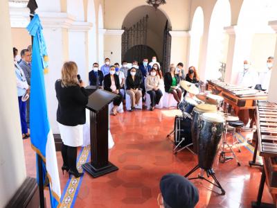 El acto inició con la interpretación del Himno Nacional de nuestro país a cargo de la marimba PAMPICHÍ de la Municipalidad de Amatitlán, en esta ocasión se brindó un reconocimiento al maestro Lester Godínez, quien es el creador del concepto de las marimbas de concierto, en la actividad también estuvieron presentes personajes del arte guatemalteco como el maestro Gustavo Ostrich y representantes del Colectivo Identidad GT.