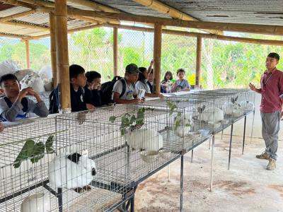 El recorrido también incluyó el contacto directo con aves de corral, conejos, cabras y peces, despertando el interés de los estudiantes por comprender los procesos que hacen posible la producción de alimentos en el campo.