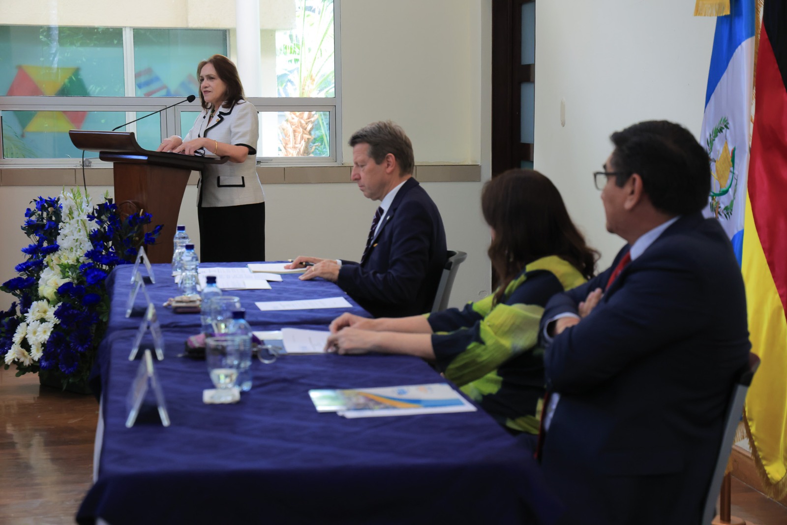 En el acto junto a la ministra Grazioso también participaron: María Luisa Ramírez, viceministra de Relaciones Exteriores; Hardy Boekle, embajador de Alemania en Guatemala; y César Medina, presidente de la Asociación Gremial de Editores de Guatemala.
