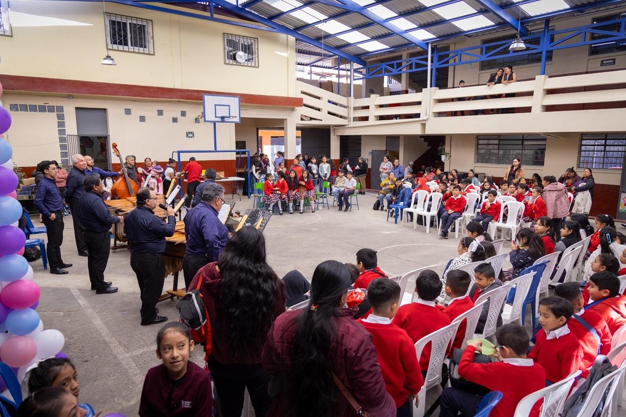 Los acordes del hormigo se hicieron presentes en la zona 11 de Mixco, transformando el patio de la Escuela Oficial Rural Mixta No. 2 “Óscar Berger” en una sala de conciertos, donde más de 350 estudiantes, desde preprimaria hasta sexto grado, participaron en la inauguración del ciclo escolar 2026 con una presentación didáctica a cargo de la Marimba de Concierto del Palacio Nacional de la Cultura.