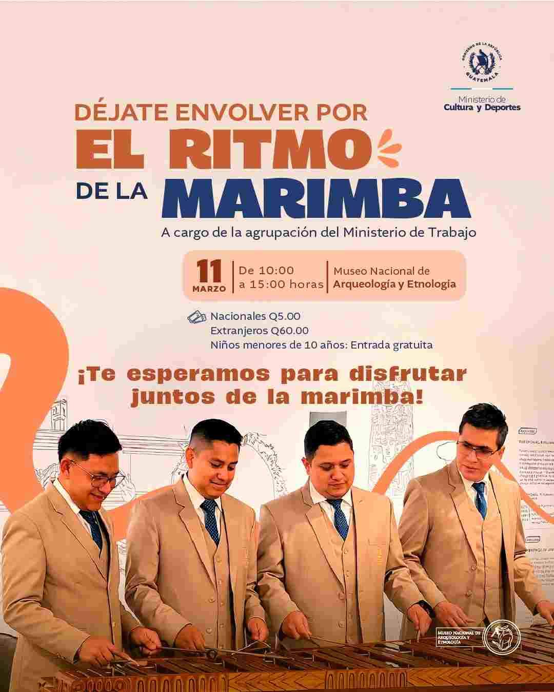 Disfruta de una jornada musical con el sonido tradicional de la marimba, interpretada por la agrupación del Ministerio de Trabajo. Ven a compartir una mañana llena de cultura, música y tradición en un espacio que celebra nuestra identidad.