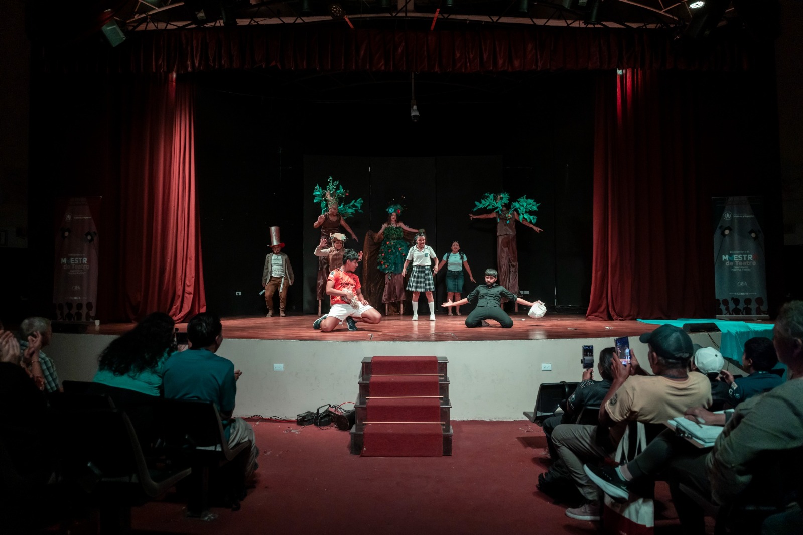 El público recibió con aplausos el talento de la Red de Jóvenes del Parque Nacional Sierra Lacandón, provenientes de Petén, y de la Compañía de Teatro Coatepeque de Quetzaltenango, quienes abordaron situaciones sociales sobre el cuidado del medio ambiente y la prevención del suicidio.