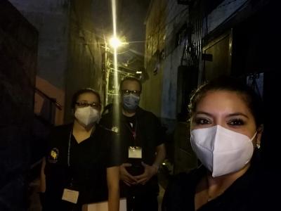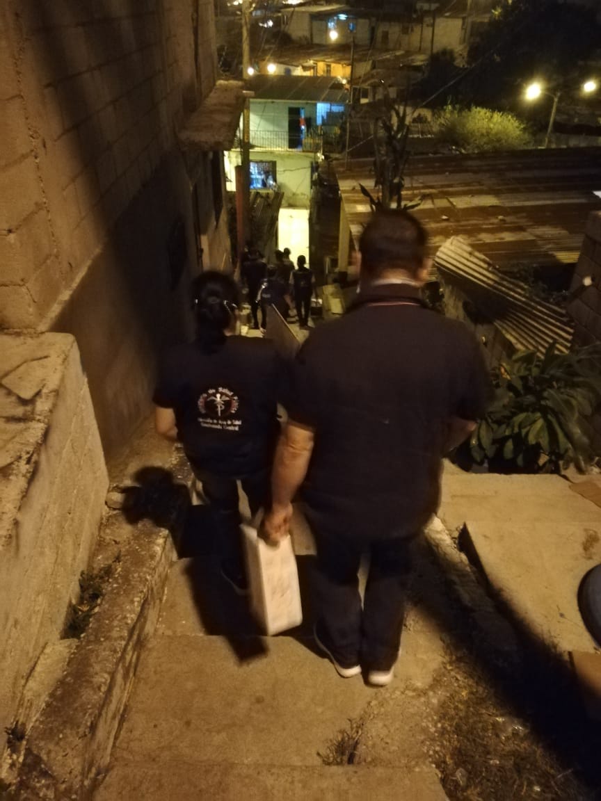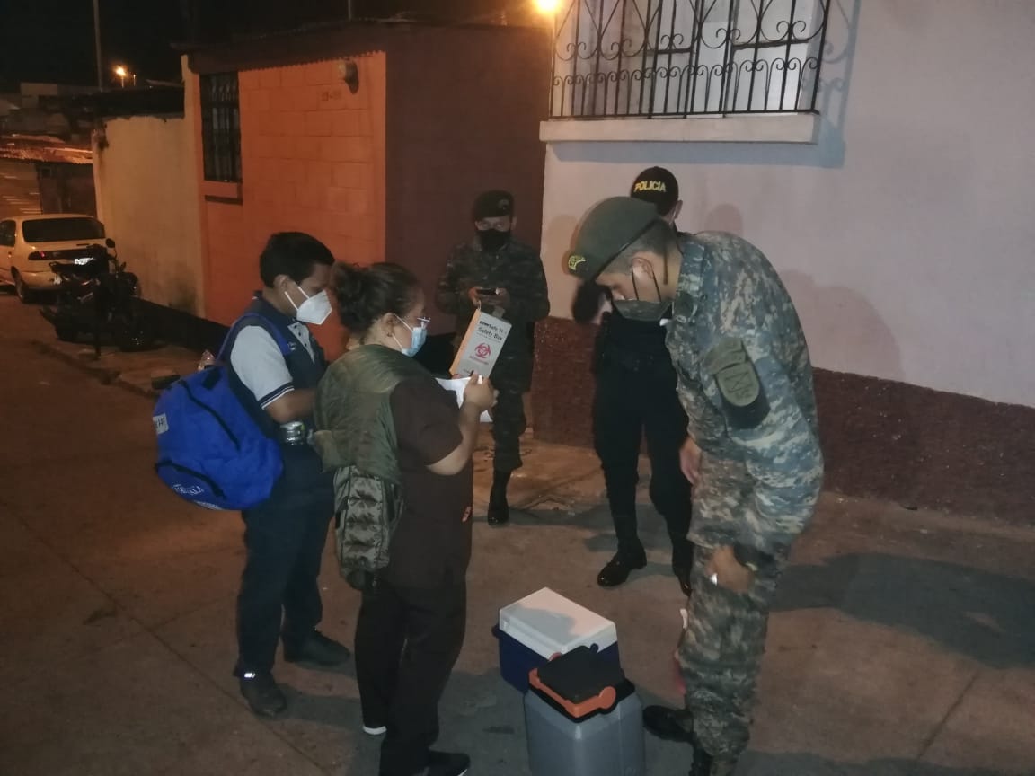 Personal de distintas instituciones se reunieron la noche de este viernes para llevar la vacuna contra el Covid-19 de casa en casa en la zona 18.