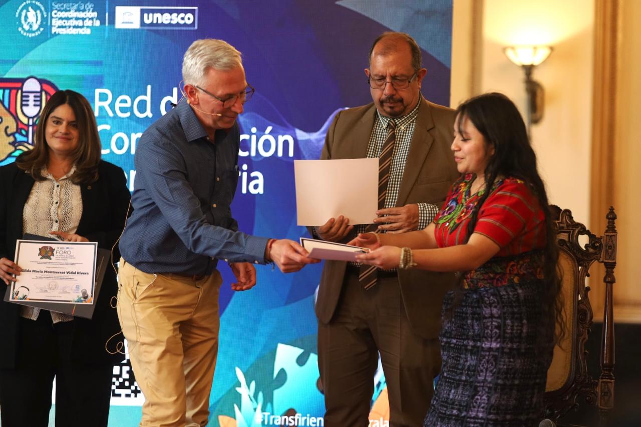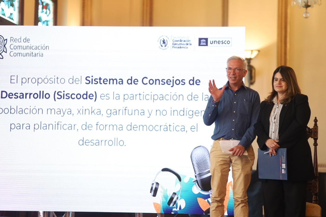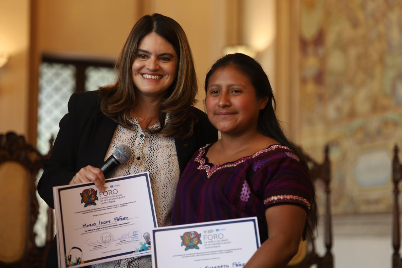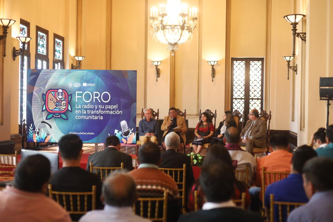 Guatemala, 13 de febrero de 2025. En el día Mundial de la Radio la Secretaría de Coordinación Ejecutiva de la Presidencia (SCEP), en alianza con la Organización de las Naciones Unidas para la Educación, la Ciencia y la Cultura (UNESCO), organizaron el Foro: “La radio y su papel en la transformación comunitaria”, actividad que convocó a 32 representantes de las radios comunitarias de las distintas regiones del país.