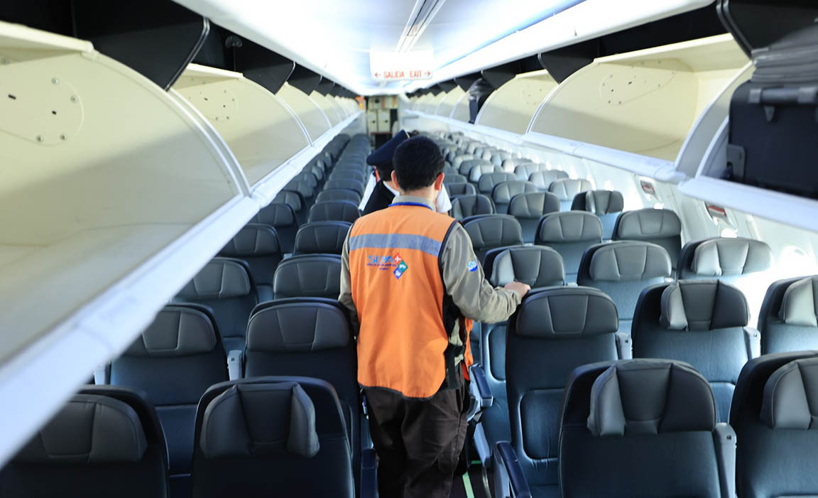 Este proceso inicia con una fotografía a la matrícula de la aeronave. Luego se hace una inspección en búsqueda de alguna plaga, la que inicia en el principio del avión y llega al final del mismo, luego de verificar los sillones, los maleteros y las puertas.