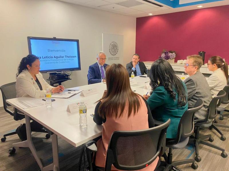 La Secretaria Aguilar dio a conocer los avances que ha tenido Guatemala en el tema de prevención, erradicación y sanción a los casos de violencia contra las mujeres y el interés de avanzar, en el marco de la cooperación bilateral con México, en un protocolo de atención consular a mujeres migrantes víctimas y sobrevivientes de violencia.