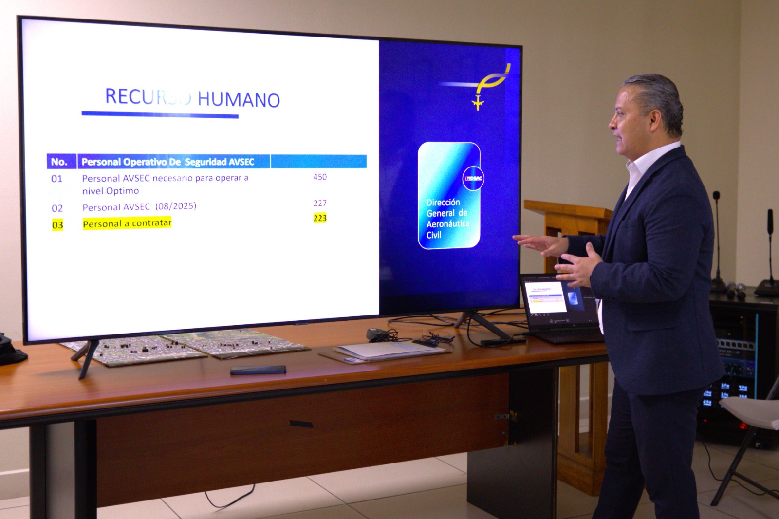 Durante la exposición, se detallaron las estrategias y coordinaciones interinstitucionales necesarias para elevar los niveles de seguridad, en sintonía con las normativas globales que regulan la aviación civil. La presentación fue recibida con interés por autoridades clave del sector.