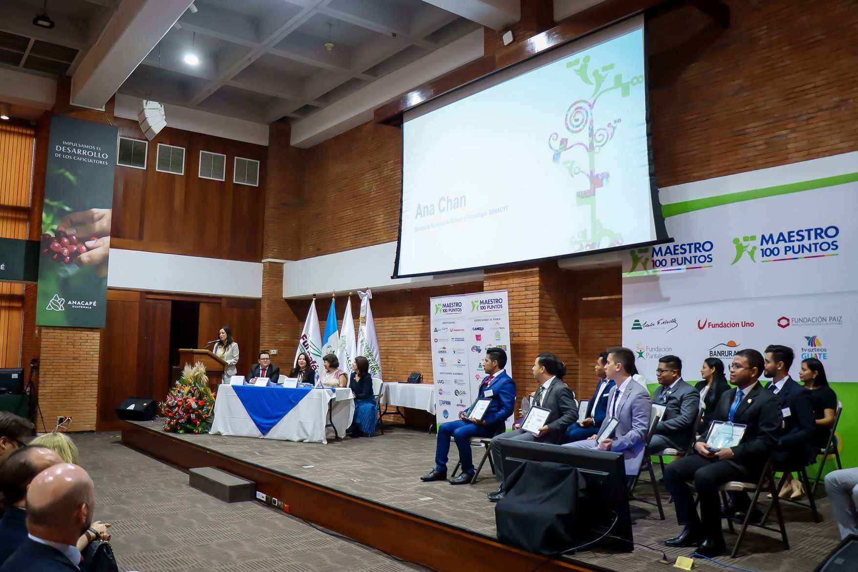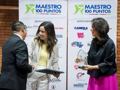 La secretaria Nacional de Ciencia y Tecnología, Ana Chan, participó en la ceremonia de premiación de los 14 ganadores del certamen Maestro 100 puntos, que entrega Empresarios por la Educación.