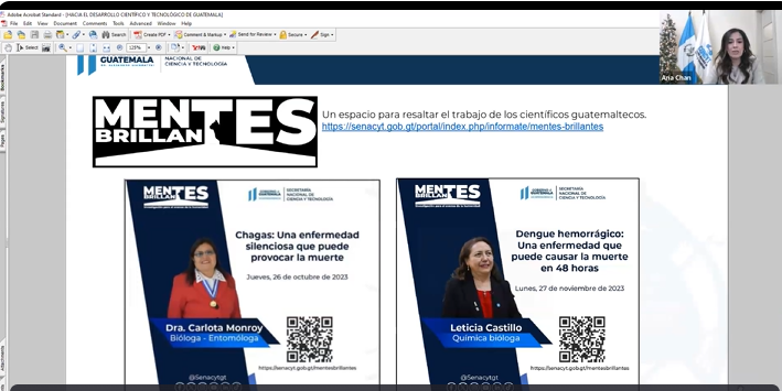 En la reunión también se presentaron las acciones ejecutadas por la Senacyt durante los meses de octubre y noviembre en las que destaca la convocatoria que aún se encuentra vigente a mujeres destacadas en la ciencia y tecnología para formar parte del volumen 3 de la Revista Heroínas de la Ciencia. Ana Chan recalcó que esta revista es un reconociendo “al liderazgo de niñas y jóvenes destacadas en olimpiadas y su participación en carreras STEM, así como visibilizar el rol de mujeres en la ciencia que llama a las vocaciones científicas”.