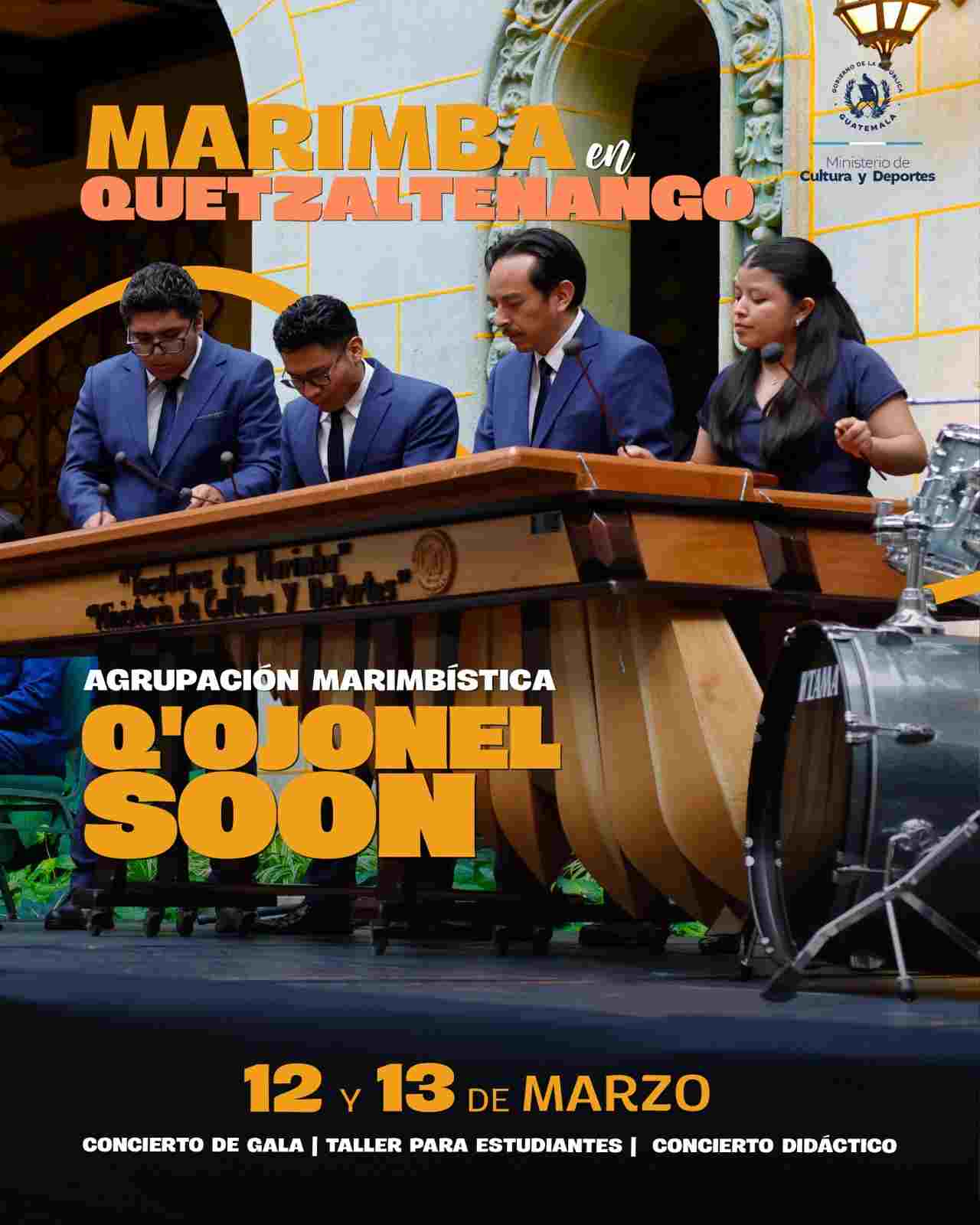 ¡La tierra de Los Altos vibrará con la alegría de la agrupación marimbística Q’ojonel Soon, que llevará los vibrantes ritmos y elegantes melodías de sus teclas morenas a Quetzaltenango, orgullosa tierra de gran tradición cultural!