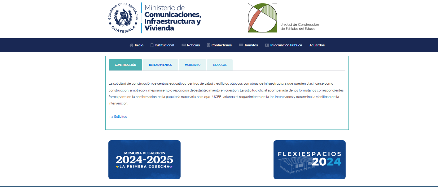 Con el objetivo de facilitar la atención a la población y modernizar los procesos de gestión, la Unidad de Construcción de Edificios del Estado (UCEE) del Ministerio de Comunicaciones, Infraestructura y Vivienda (CIV) invita a instituciones, municipalidades y usuarios interesados a utilizar los servicios en línea disponibles en su portal web para realizar solicitudes relacionadas con proyectos de infraestructura pública.