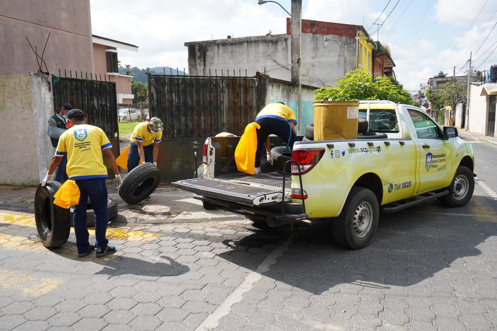 A través de la comuna de Santa Catarina Pinula se ha avanzado en labores de limpieza en la zona 1, llevando a cabo visitas de casa en casa para recoger los objetos en desuso, envases, llantas y chatarra que sean focos de criaderos de zancudos.