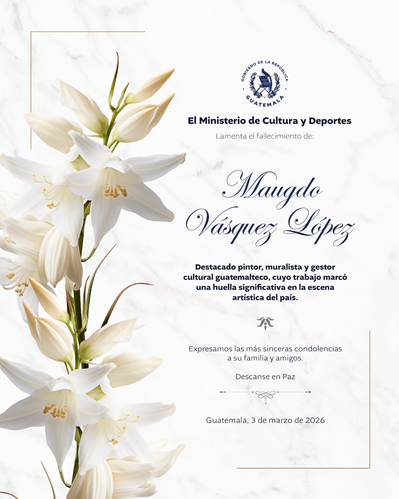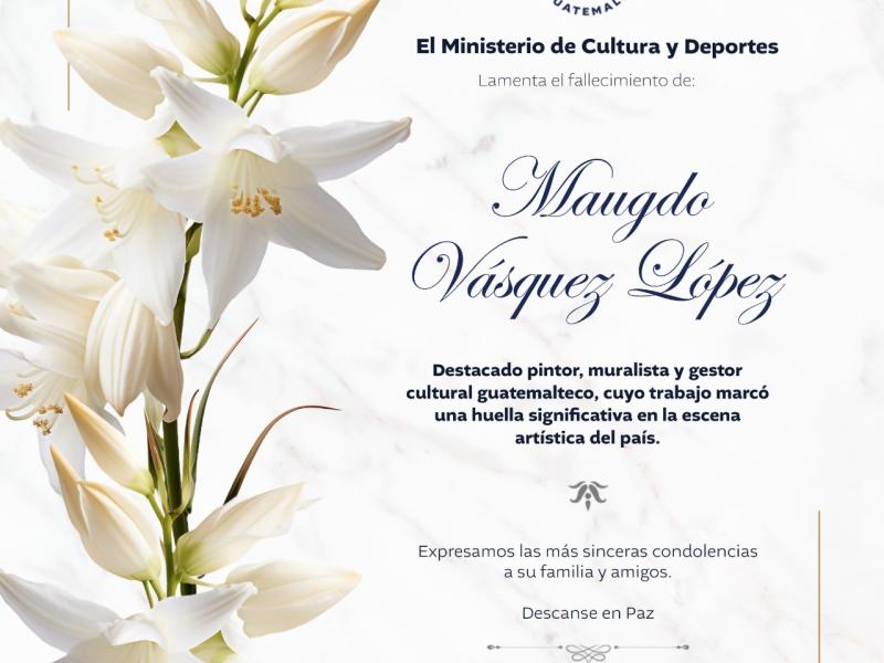 Lamentamos profundamente el sensible fallecimiento de Maugdo Vásquez López, destacado pintor, muralista y gestor cultural guatemalteco.