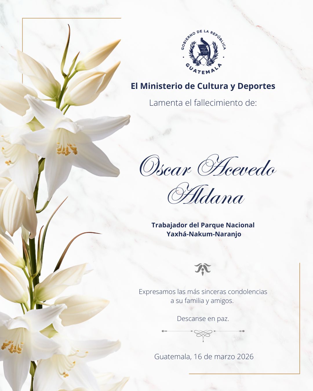 Lamentamos profundamente el sensible fallecimiento de Oscar Acevedo Aldana, trabajador del Parque Nacional Yaxhá-Nakum-Naranjo.