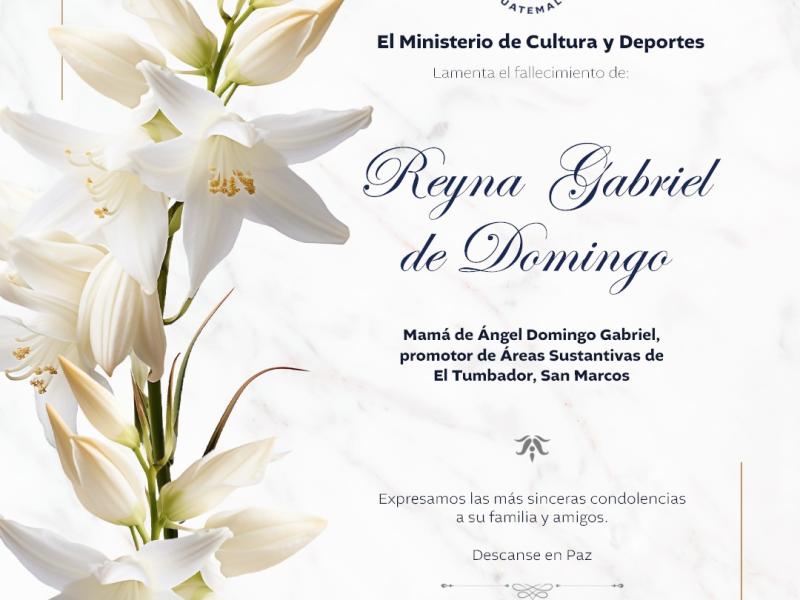 Lamentamos profundamente el sensible fallecimiento de Reyna Gabriel de Domingo