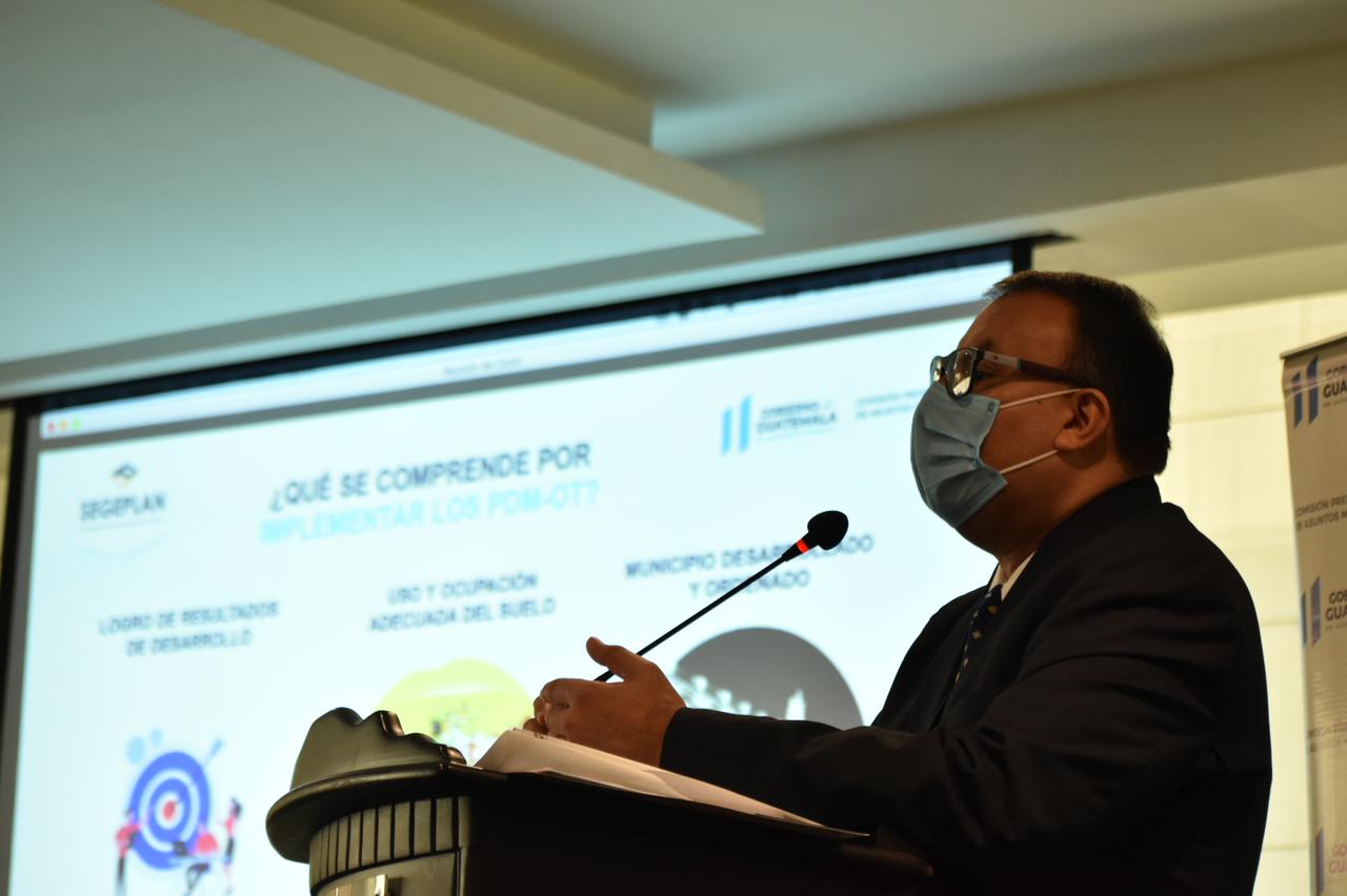 Para el efecto, se realizó un acto especial en modalidades virtual y presencial, en el que el Subsecretario de Planificación y Programación para el Desarrollo, de SEGEPLAN, Stuart Romeo Villatoro, expuso el proceso de implementación de los PDM-OT desde el ámbito técnico, y el Comisionado Presidencial de Asuntos Municipales, Luis Ruano, presentó el proceso de implementación desde el ámbito político y social.