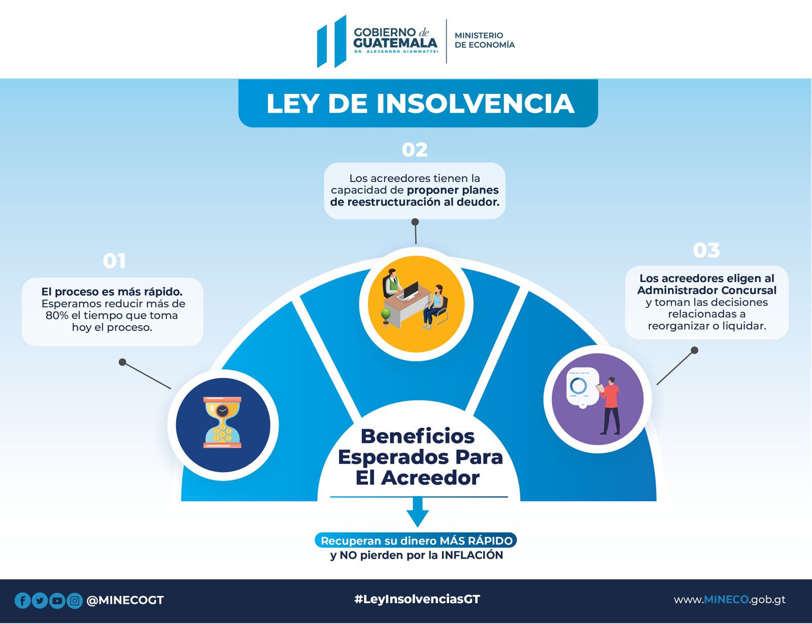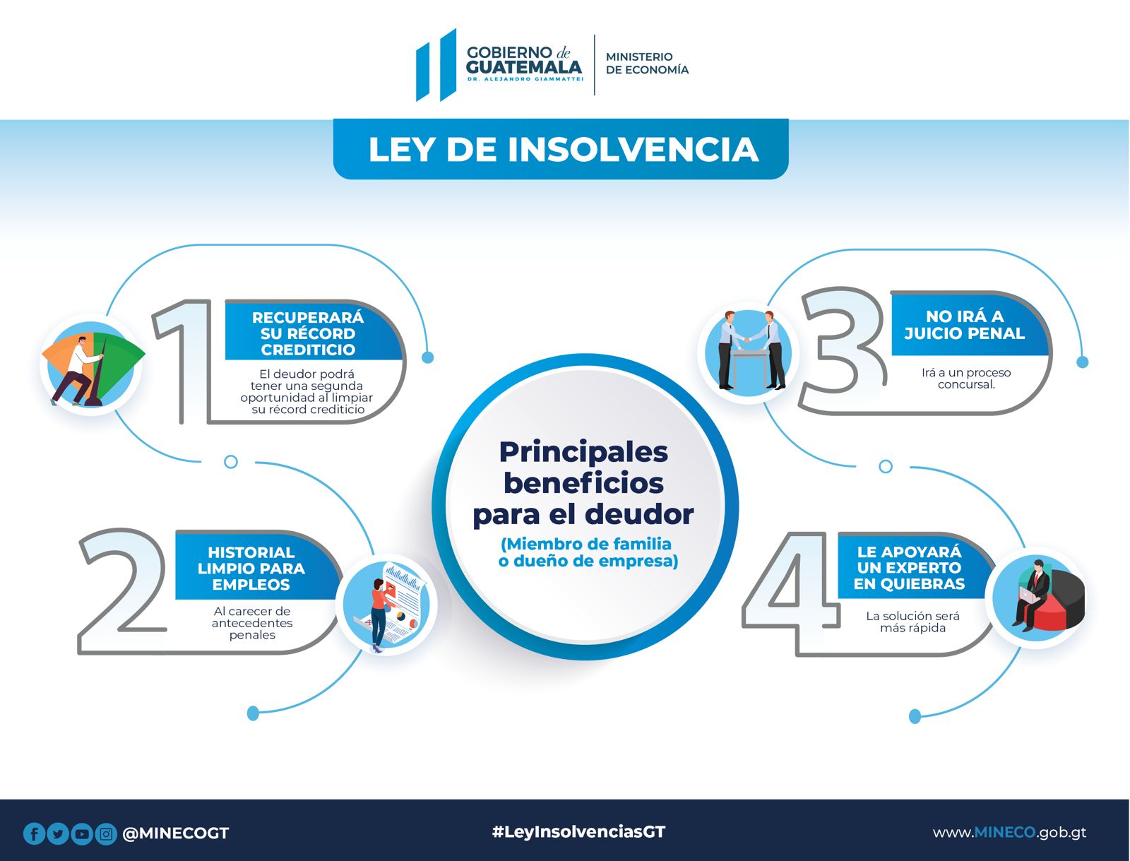 La Ley de Insolvencias (Decreto 8-2022) aprobada el martes recién pasado por el Congreso de la República, se convierte en una herramienta para mejorar el clima de negocios del país como resultado de las gestiones realizadas por el Gobierno del Presidente Giammattei en el marco del Plan General de Gobierno (PGG).