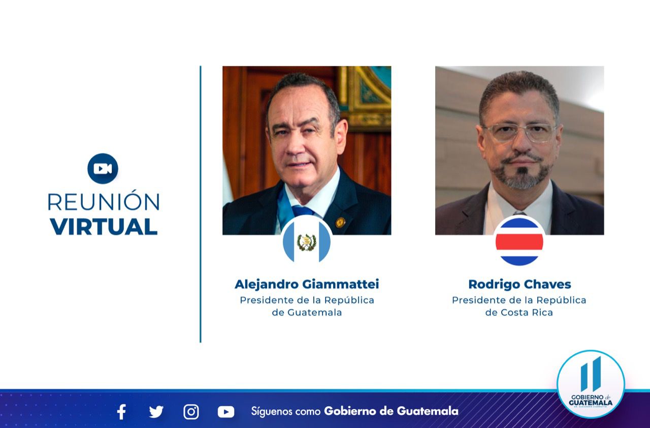 Los presidentes de Guatemala, Alejandro Giammattei, y de Costa Rica, Rodrigo Alberto Chaves Robles, sostuvieron una llamada en la que ambos mandatarios reafirmaron su compromiso en temas de comercio, inversión, turismo y migración.
