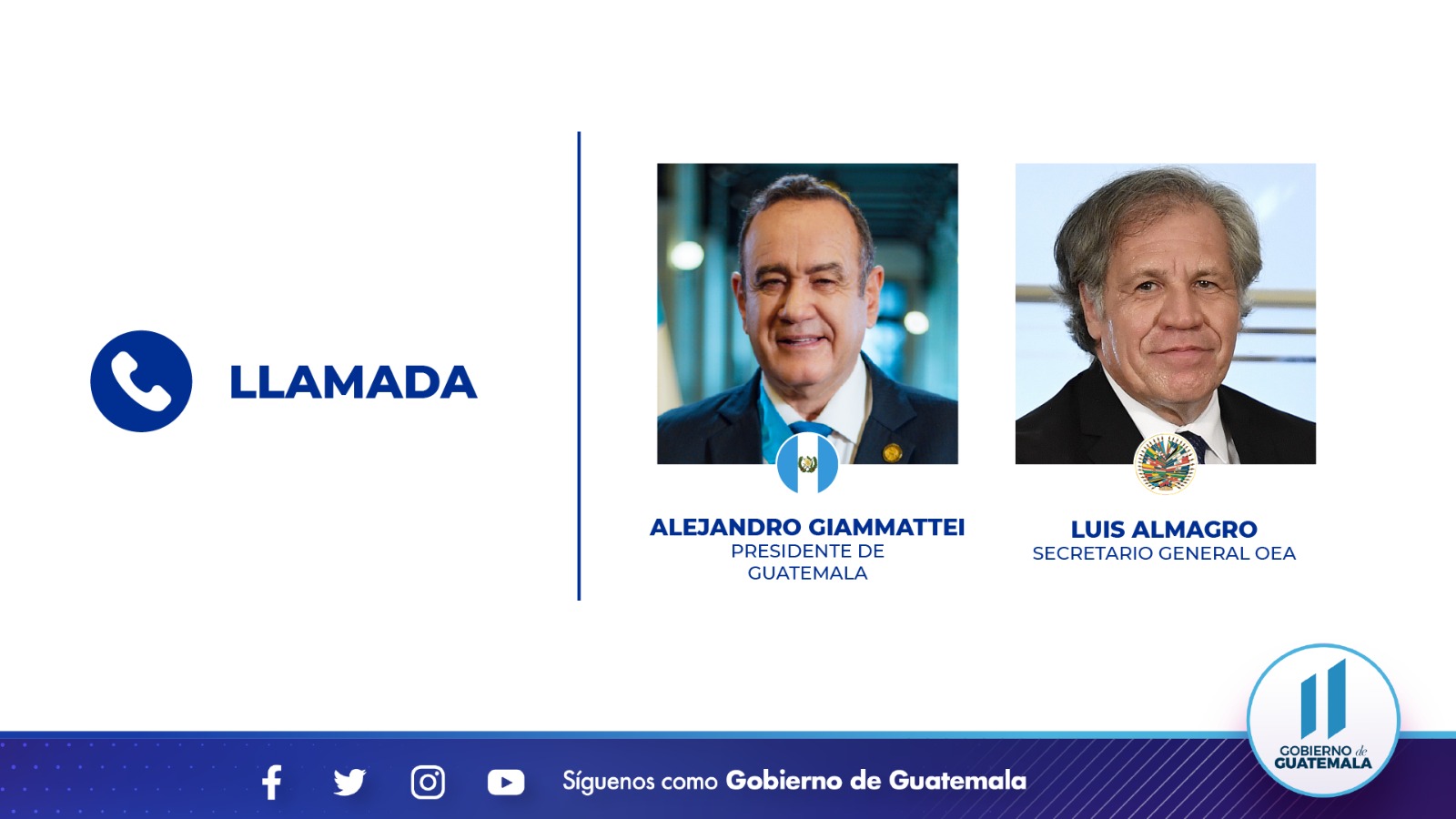 Llamada entre Presidente Alejandro Giammattei y Secretario General de la OEA, Luis Almagro