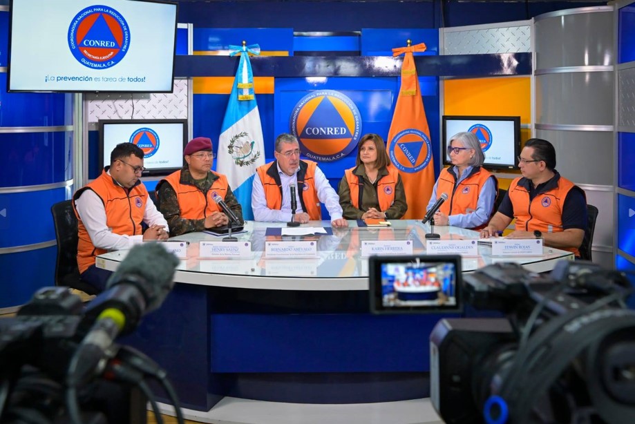 En conferencia de prensa, el presidente de la República, Bernardo Arévalo, junto a la vicepresidenta Karin Herrera y autoridades que integran la Secretaría Ejecutiva de la Coordinadora Nacional para la Reducción de Desastres (SE-CONRED), informaron la situación actual ante la época lluviosa.