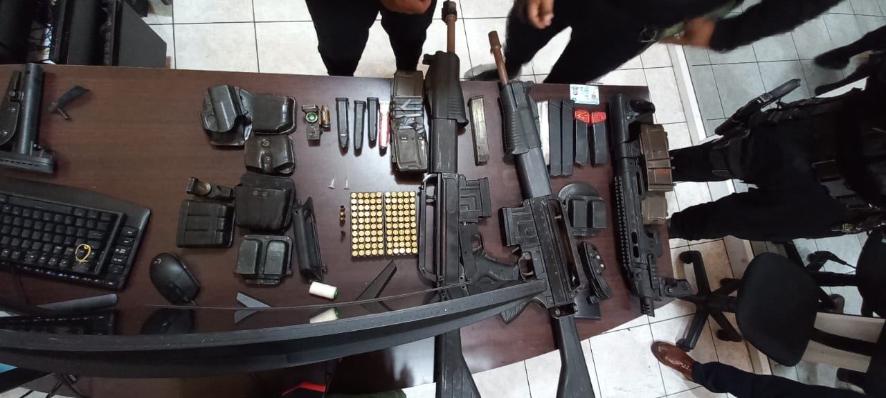 De forma preliminar, los investigadores reportan la localización de 3 armas de fuego de grueso calibre, municiones, tolvas, casquillos y un dispositivo móvil, mediante un operativo realizado en una residencia ubicada en la 1ª calle y 8ª avenida, zona 1 de Chiquimula.
