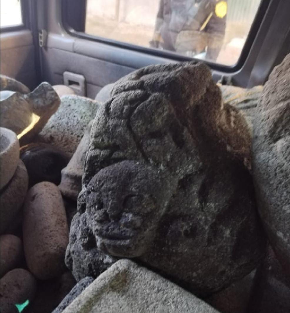 En un trabajo coordinado por investigadores de la División Especializada en Investigación Criminal (DEIC) y agentes de la comisaría 74 interceptaron una camioneta en un sector de La Antigua Guatemala, Sacatepéquez, al efectuar el registro se observó que transportaban piezas arqueológicas, presuntamente patrimonio cultural.