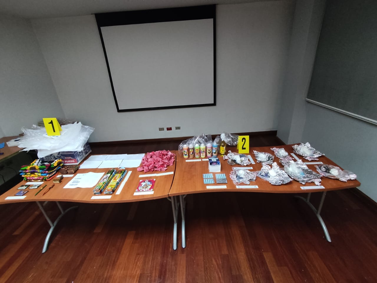 La droga estaba oculta en varios objetos, incluyendo fragmentos de cera fina, prendas de vestir, lijas de papel con serigrafía, adornos artesanales, bolsas de nylon, fragmentos de aluminio, y envoltorios que contenían droga positiva para cocaína.