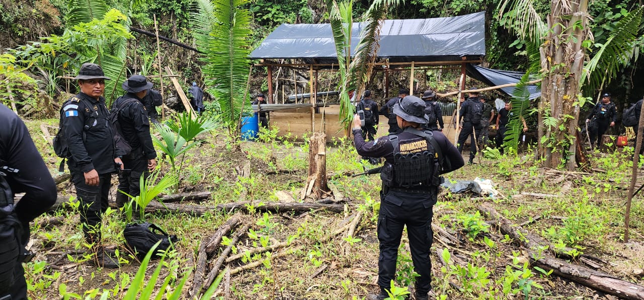 La Policía Nacional Civil (PNC) reporta la localización de una plantación de arbustos de hoja de coca y un laboratorio mediante un operativo interinstitucional de búsqueda y destrucción de cultivos ilícitos, ejecutado este 28 de septiembre en la aldea Las Cabeceras Semox, Chahal, Alta Verapaz.