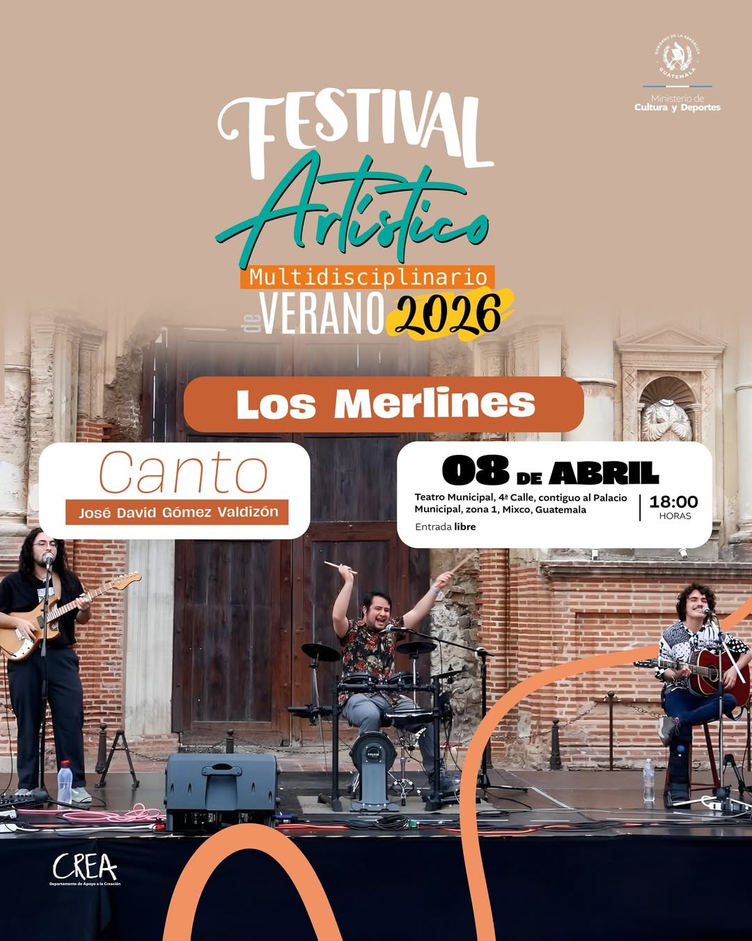 Disfruta de este concierto con un repertorio de canciones originales que la banda musical guatemalteca «Los Merlines» presentará como referente para jóvenes músicos y artistas