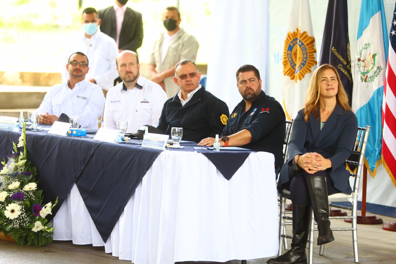 El acto fue presidido por el ministro de Gobernación, David Napoleón Barrientos, el quinto viceministro, Fernando Rodas, el embajador de Estados Unidos, William Popp, el ministro de Comunicaciones, Infraestructura y Vivienda, Javier Maldonado y la directora de Asuntos Antinarcóticos y Aplicación de la Ley (INL), Kelly Hapka.