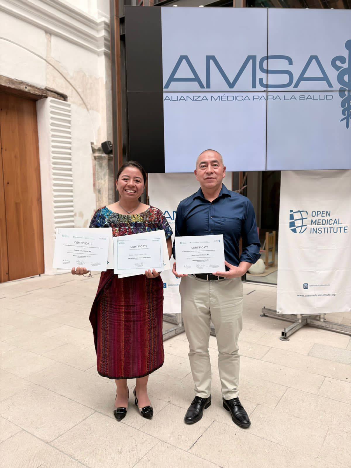 El doctor Mario César Ulín y la doctora Rebeca Chiyal Lacan, representante del equipo médico del Hospital Departamental de Sololá y coordinadora del Distrito Municipal de Salud de Atitlán, respectivamente, recibieron un reconocimiento por su destacada participación en el seminario internacional “Maternal and Infant Health”, organizado por la Open Medical Institute (OMI) en la ciudad de Oaxaca, México.