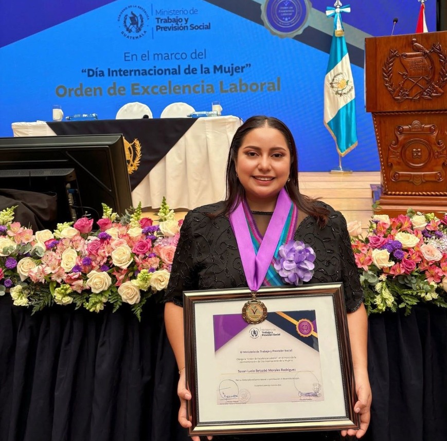 En el marco de la conmemoración del Día Internacional de la Mujer, el Ministerio de Agricultura, Ganadería y Alimentación (MAGA) celebra con orgullo el reconocimiento otorgado a Susan Lucía Betzabé Morales Rodríguez, quien fue condecorada con la "Orden de Excelencia Laboral".