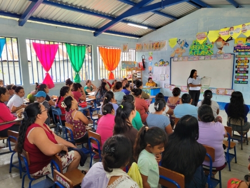 Madres y padres de familia de la Escuela de Barrio Bethel, en San Luis, Petén, participaron en una reunión informativa sobre medidas de prevención de enfermedades transmitidas por zancudos, organizada por el Programa de Enfermedades Transmitidas por Vectores (ETV), de la Dirección de Servicios de Salud Petén, Área Sur Oriente.